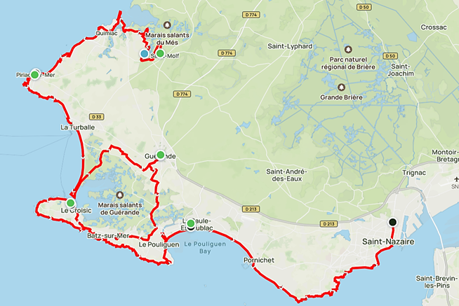 parcours vous fera longer la côte atlantique jusqu’àu petit port de Piriac-sur-Mer