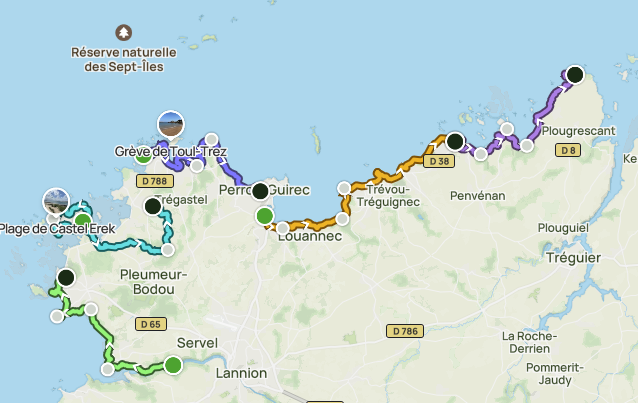 Petit transfert au port de plaisance de Perros-Guirec, le littoral parsemé d’îlots devient plus sauvage à partir de Louannec. La randonnée s’achève dans le cadre enchanteur de la baie de Port-Blanc.