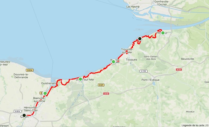 L’itinéraire vous mène jusqu’à Deauville, célèbre pour son hippodrome et ses iconiques “Planches”, promenade en bois liée au Festival du cinéma américain.