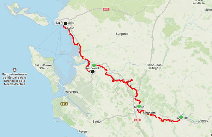 Retour au point de départ : Vers La Rochelle pour récupérer son véhicule : TER Cognac – La Rochelle.