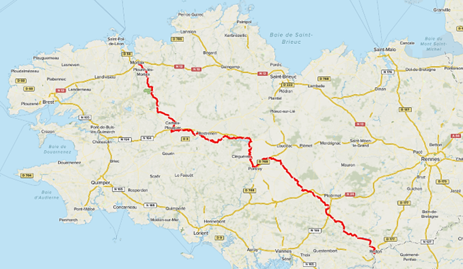 Première étape depuis le nord de la Bretagne. Vous traverserez les Monts d’Arrée avant de rejoindre Carhaix.