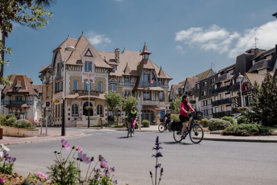 Vous rejoignez la mer en longeant le Canal de Caen à la mer, puis pédalez sur la Côte Fleurie via la station élégante de Cabourg avant d’atteindre Blonville-sur-Mer, son architecture balnéaire et ses grandes plages.