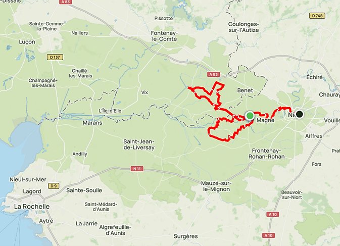Départ de l’hôtel à vélo vers Niort, la capitale de la “Venise Verte”, en longeant la rivière Sèvre Niortaise sur une piste cyclable. Découvrez la ville de Niort, son donjon et sa place du marché (élue “Plus belle place de marché de France 2024”). Après la visite de la ville, retournez à Coulon par la même piste cyclable, la Vélo Francette.