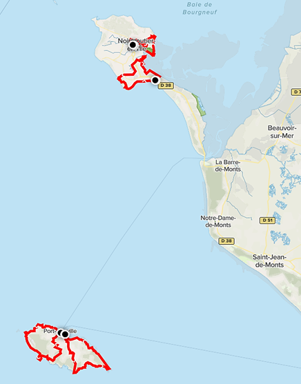 En cours de circuit (J4), liaison car Fromentine – Noirmoutier (30 mn).