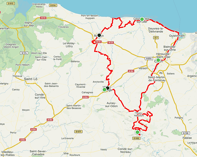 Dernière étape, vous rejoignez votre point de départ, la boucle est bouclée ! Vous passerez par Arromanches-les-Bains et son musée du Débarquement avant de prendre la direction de Bayeux.